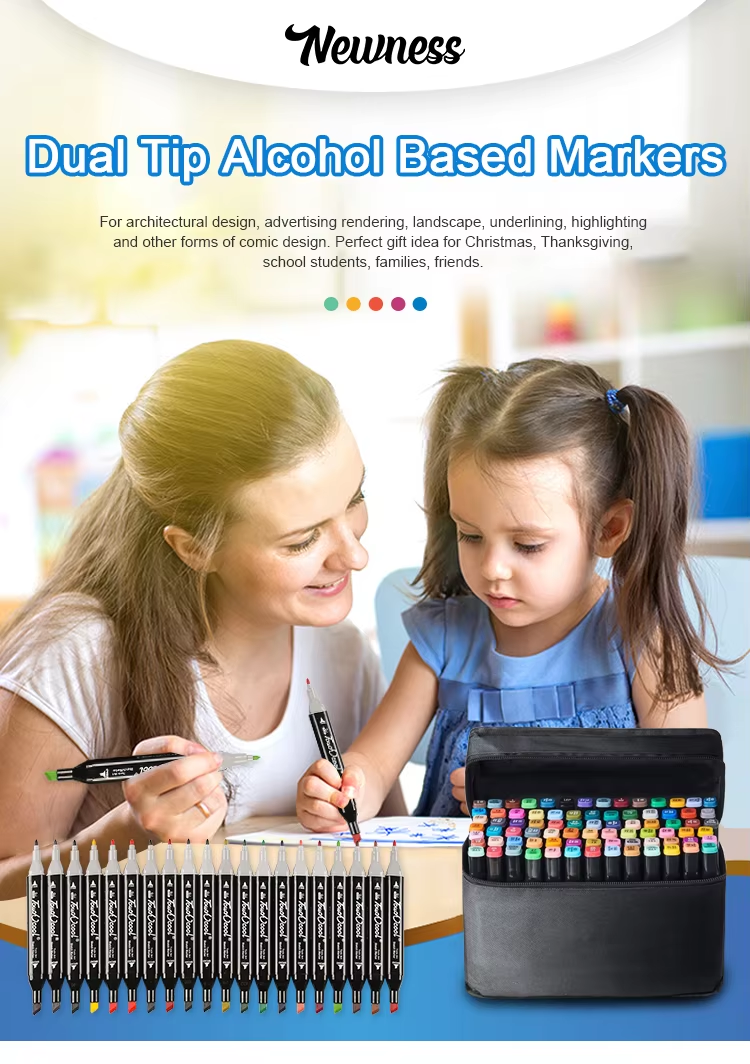 Conjunto de 204 Marcadores de Desenho Touch Art à Base de Álcool para Artistas, com Ponta Dupla e Cores Permanentes.