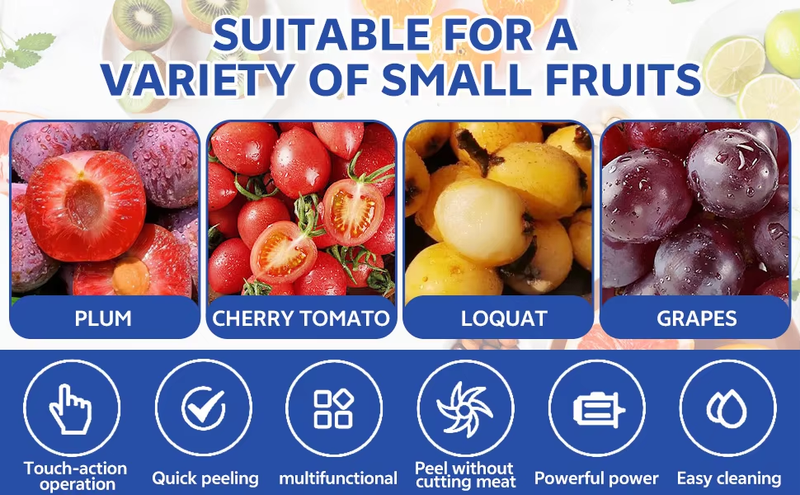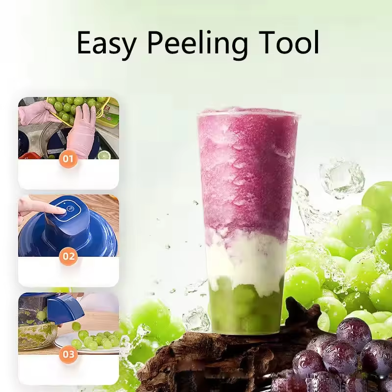 Descascador automático de alho, uva, tomate, frutas e legumes, ideal para uso doméstico.