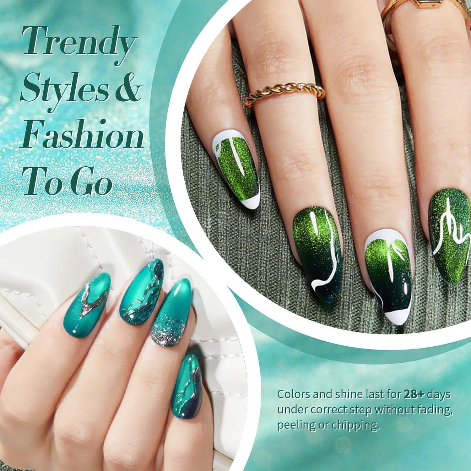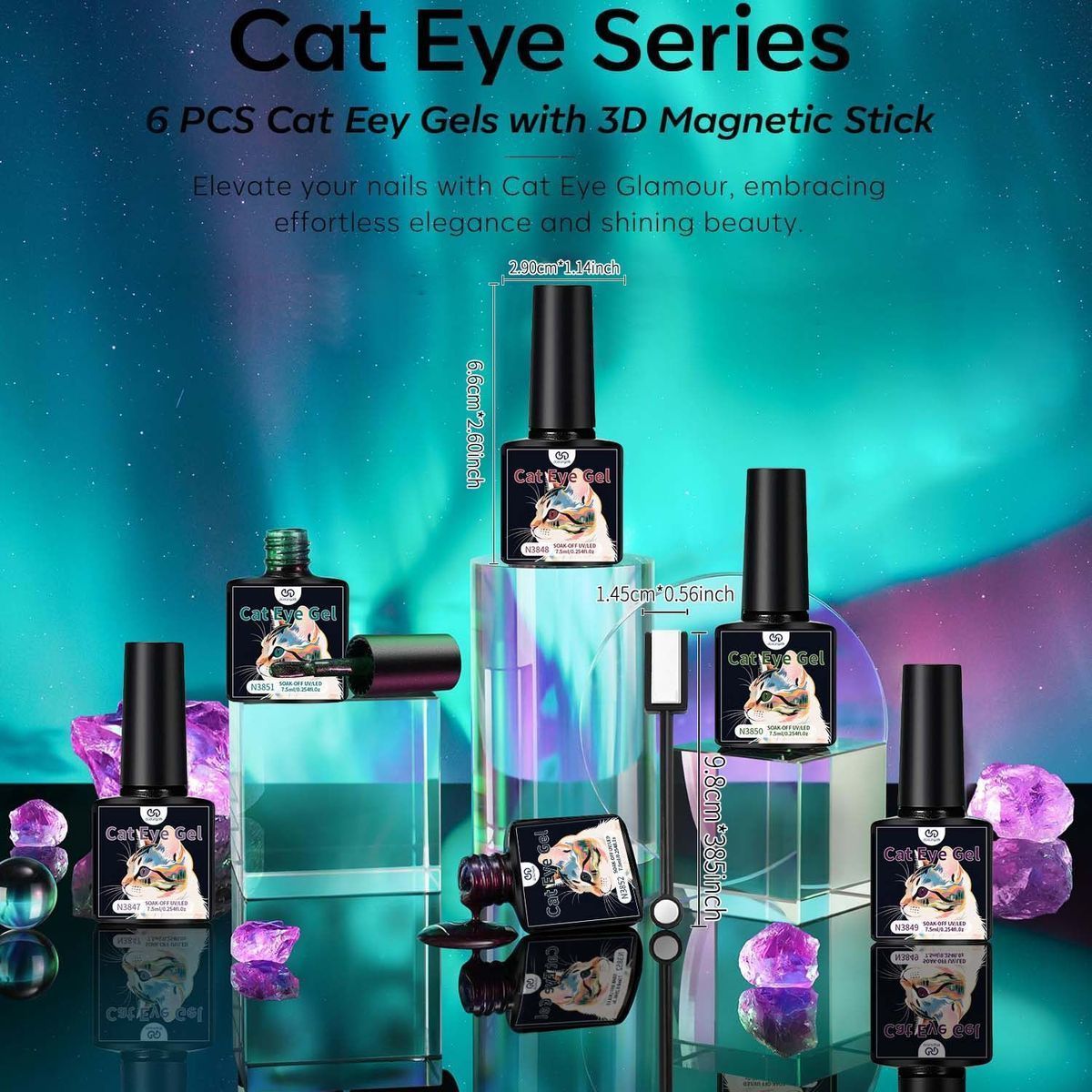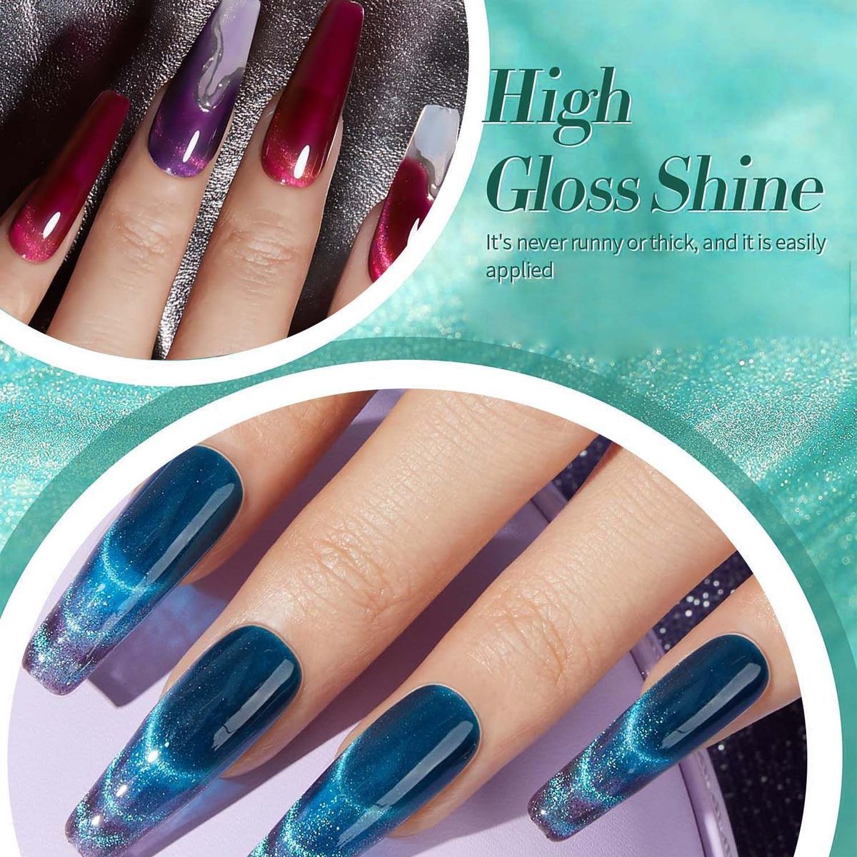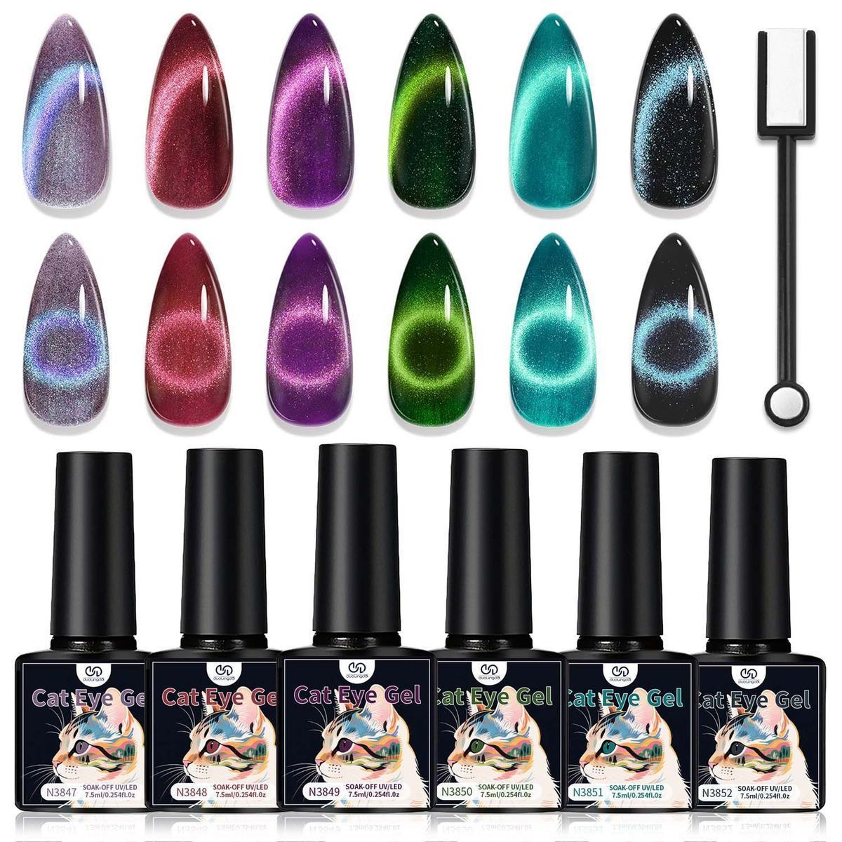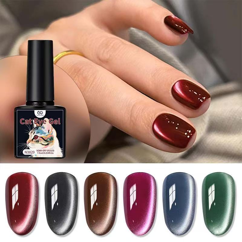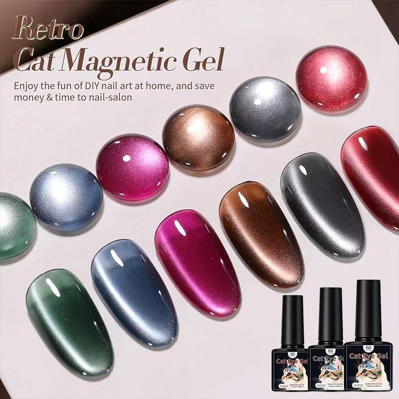 Um conjunto de 12 cores de verniz gel olho de gato e uma mini lâmpada UV portátil para uma secagem rápida.